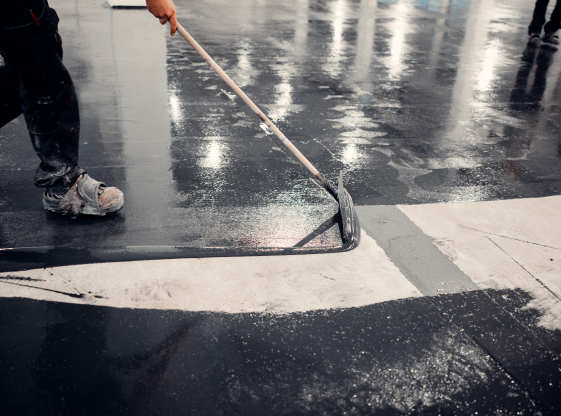 Application of Seal Coat: We apply a premium seal coat using professional equipment to ensure an even and thorough application.